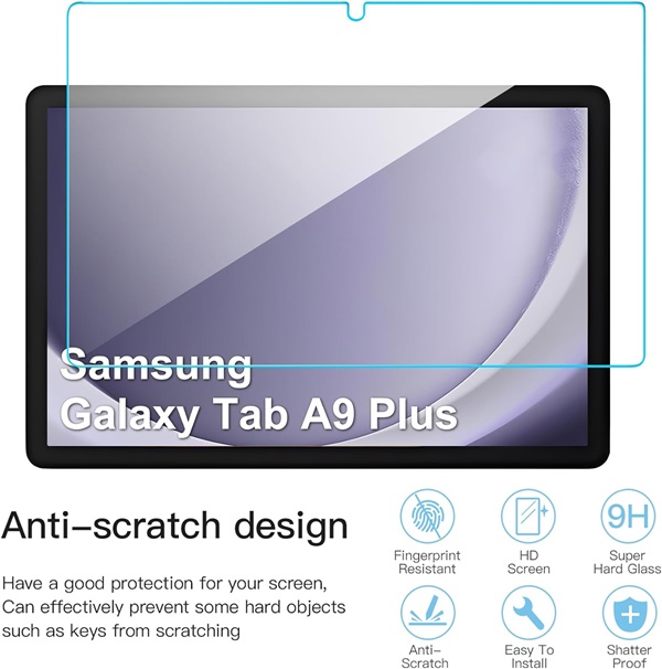 “Safeguard your Samsung Tablet Tab A9+ Plus 11″ X210 / X215 with our Premium Tempered Glass Screen Protector. Designed to provide maximum protection, this screen protector features a high-strength tempered glass construction that resists scratches, impacts, and everyday wear and tear. Enjoy crystal-clear clarity and an ultra-responsive touch experience that maintains the original look and feel of your tablet.